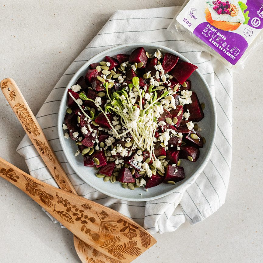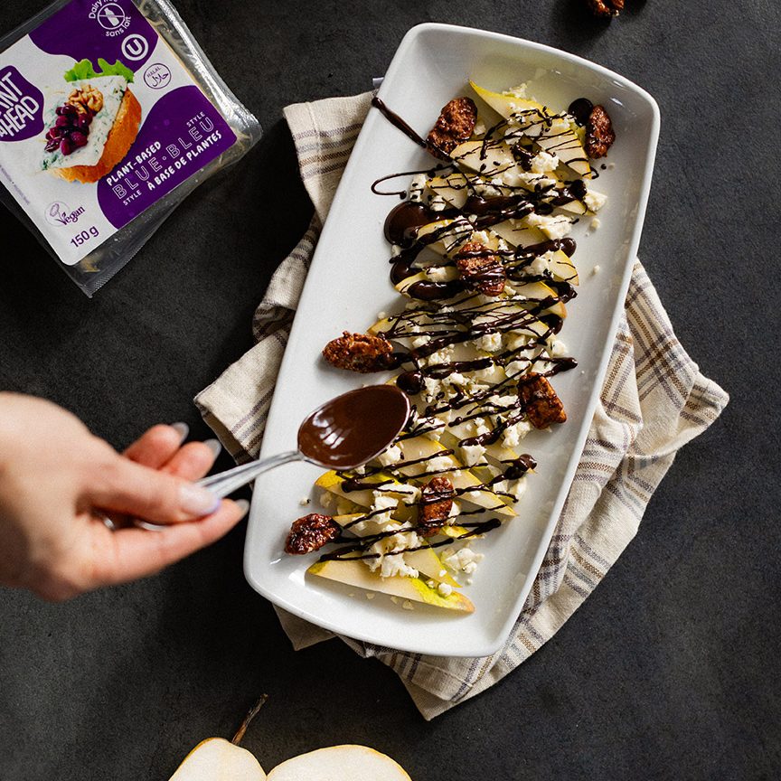 From its deep pungent profile, to black/blue veins, this vegan alternative will satisfy both the eye and the pallet of the most discriminating blue cheese lover.